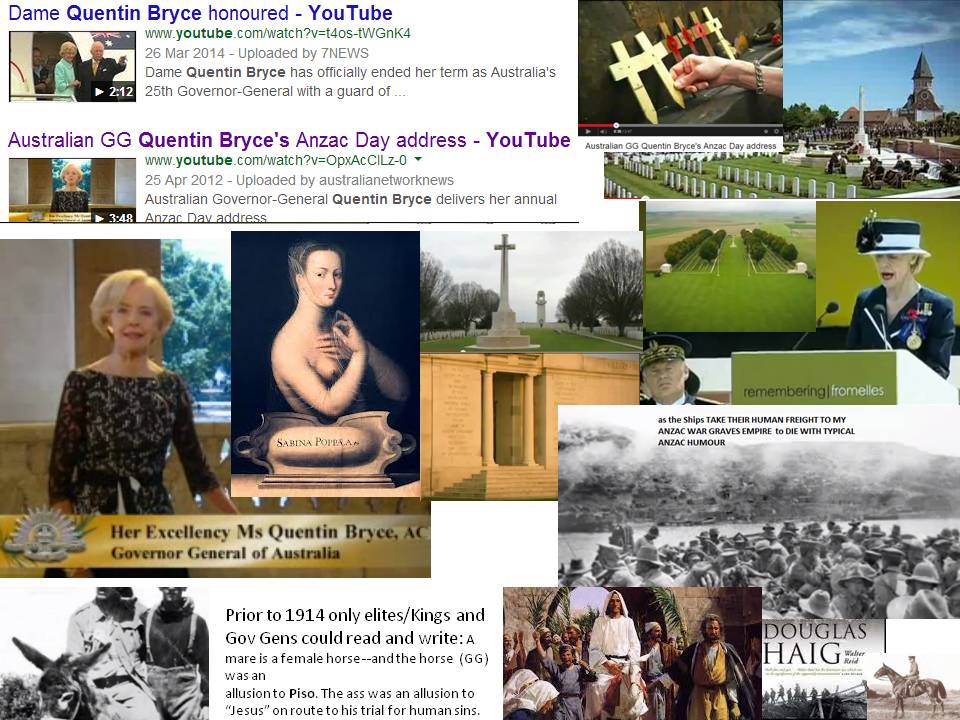 This wont take long. I want you to understand how and why the world is sent to war. BUT MOST OF ALL I want you to know that world leaders think it is hilarous that people will give their lives, or their children's lives, for the profiteering bastards that run our brutalised/greedy world. Quentin Bryce Resigns Charles Bean Press Gallipoli Tim Shipman IRAQ Daily Mail Governor General ANZAC war dead London Olympic Joke.JPG ![]() Anzacs' Governor General, the charming Quentin Bryce. Then, almost exactly 100 years later, Mr Bean is back in the limelight as a sickening comedy at the opening of the London Olympics leading the GLOBAL CHARIOTS OF FIRE.JPG Constitutionally, she has more power than the Australian PM but she speaks well of the ANZAC troops for their sense of humour and sacrifice as human freight. Listen carefully for Mr Bean (and find out who he was and what he did in Gallipoli) Then, almost exactly 100 years later, Mr Bean is back in the limelight as a sickening comedy at the opening of the London Olympics leading the GLOBAL audience into dancing to the vicious tune of CHARIOTS OF FIRE. Watch Beans mannerisms (and how he takes his WHITE hanky out wipes his snout then tosses it away....this is symbolism for a new world order joke that I will explain at the bottom) So video 2 in the presence of the Royals, the Prime Minister and National "dignitaries like Banki Moon, who are a wee bit dim, despite their OLYMPIAN salary, to understand the joke as quickly as the LOCOG organisers (Lord Coe, Princess Anne, David Beckham and Nick Clegg deputy prime minister and husband of a state sponsored assassin in peacetime: Ms Miriam Clegg trained to kill in BRUGES http://www.abeldanger.net/2012/08/abel-danger-mischief-makers-mistress-of_2.html). The construction of this makes millions for its organisers (and G4S who made hundreds of millions but did not bother to do the job under the guidance of Princess Di's "law enforcer/inquest chair" Lord Condon....his verdict accidental death...the Romantic French prefer unlawful killing in L'Alma tunnel "THE APPLE", original female sin joke). LOCOG who share a building with the HSBC, under which the London suicide bombers were shot by the Metropolitan police (See Cressida Dick, Professor Manningham Buller head of MI5 & Imperial College London and the Home Secretary Theresa May, with PMs Presidents and their partners on this list http://www.abeldanger.net/2012/08/abel-danger-mischief-makers-mistress-of_2.html) because their train was cancelled, so MI5 just killed the commuters for them and publicised it on BBCs Panorama the year beforeFATAL "ACCIDENTS" no culprits. Anyway, here is the JOKE live in front of its adoring and loyal global audience. Mr Bean has another life as a comedian.....BLACKADDER named after a local leader in the Borders who was involved in the Flodden genocide which still, 500 years on is seen as a tragedy related to a "battle for freedom" . In his Blackadder roles Mr BEAN parodies "Great Britain's" BLOODY IMPERIALIST HISTORY with other characters identifiable as Field Marshalls or Monarchs....the audience laugh loudly at individual episodes but one hopes they may soon see that they, and their family's dead war veterans or innocent bystanders, are the VICTIMS. The BBC Blackadder team had the callousness to laugh at the ultimate sacrifice for 80 million people in the worlds biggest cull for GOLD. Please look at this timelineTimeline: Black Forces in the G8-G20 profiteering Plot/Crimes...go to 2016 (and look at how clever lustful professors, who became pacifist presidents, extended WW1 by 2 bloody years AND set up WW2 by implanting Jews in the Supreme Court in the USA)....they then created the hatred for WW2 & the holocaust PROGROMS today purely for profit. Chariots of Fire makes you reach for your hanky as the hero dies for his country after refusing to run on a SUNday as a devout "christian" see the 2000 year Piso joke below the tragic events laughed at below. But watch this first it is chilling The little chap, actor Tony Robinson/Jester Role player "Baldric", who has a cunning plan is a "historian at the BBC" and a champion for the working man as a boss/fundraiser at the Labour Party (icon for the New Labour war criminals in Iraq and Afghanistan). The Field Marshall character (who is played by a Manic depressive actor, called Steven Fry, who plays Jeeves....created by "Pacifist Joker" conscientious objector PG Wodehouse) is, of course, ABSENT from the front line....but when the war ends, in real life he gets to save the horses first, leave forced labour all over Europe's mass gravesEndless Prisoners Killed or Enslaved by the "Peace Loving Nations" and then becomes the Chancellor at St Andrew's ("PATRON SAINT" of many gullible, easily led countries, also a joke in the fictitious Piso-written New Testament....which was laughed at by Frankie Howard in UP POMPEII....the new testament was written in Herculaneum in the Villa Papyrii and when it was released 79 years after Jesus was alleged to have been born VESUVIUS BLEW ITS TOP....ONLY FIELD MARSHALLS, DICTATORS and MONARCHS get to know this joke in 2000 years of crusading and religious geo-political persecution Faking the New Testament: A masterplan for geo-political domination. AND the JOKES Decoding the New Testament and Quoran Jokes AND Reading and writing: Just one very profitable book! AMEN. The Chancellor at st Andrews gets to run the BBC in Scotland, the poppy fund/scam and to educate the queen's kids and commoners that enjoy a good night out. THIS PAGE REVEALS the Super Elite GARDEN OF ADEN, now YEMEN/British Petroleum JOKE. Reading and writing: Just one very profitable book! AMEN . I have no time to reveal all the cunning professors (many were rocket scientists or nuclear physicists) who were taken to other continents to deliver the NUKES that the G8 countries Israel, Norway New Zealand and south Africa have made since the last war to end all wars failed to do any such thing BUT these 