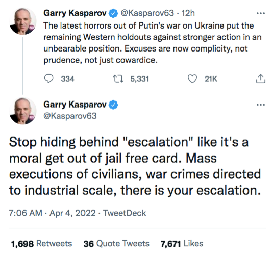 Hi Caitlin. Thank for your response. I tweeted because the choice of letting Russia invade a sovereign country & nuclear war is not binary. We cannot possible subscribe to a world order that abhors authoritarian and war crimes, yet allow this to happen.