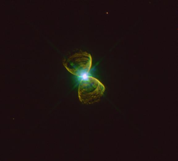 XZ Tauri, a new star that exploded a decade ago, ejecting those two great lobes of gas. By Judy Schmidt.