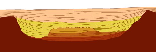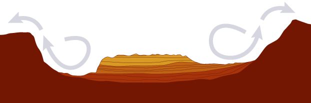 Then a second layer of sediment was deposited, probably by the wind, filling the entire crater.