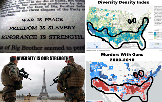 Philosophically, the Postmodern drive for empowering meaninglessness gave us "theory," where the full range of actual discursive tools developed to extend human understanding can be reduced to empty pages of unreadable text. Politically, the wonder of human biodiversity was jettisoned for a soulless consumerist monoculture where you can “express yourself” by the color of your iPhone case. Look how Postmodernists responded to linguistic inteterminacy – not by calling for better hermeneutics, but by denying the possibility of meaning at all. How is this a normal, healthy reaction to the abstractions inherent in communications? Short answer: it isn't, but leveling categories and blocking external verification is what empowers their Orwellian inversions of language: