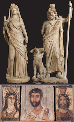 Roman statues of Persephone/Isis, Cerberus, and Pluto/Serapis, Archaeological Museum of Heraklion, Crete