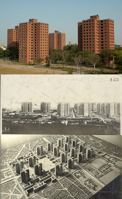 The roots of urban poverty are too complicated to ascribe to a single cause, but soulless Modernist housing projects like this certainly didn't provide an environment suited to growing healthy, organic communities. This concept of warehousing people in bland towers originated in Le Corbusier's sociopathic Voisin Plan for Paris. He proposed razing the historic core of the city to make room for rows of identical concrete towers for personal reasons worth considering: