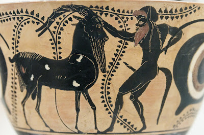 Silenus and billy goat. Side A of an Attic black-figure kyathos, circa 520 BCE, terracotta, Metropolitan Museum of Art, New York