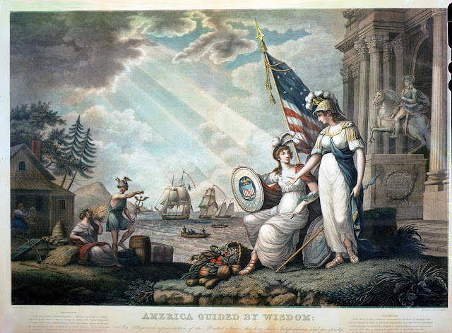 John J. Barralett, artist, Benjamin Tanner, engraver, America Guided by Wisdom, 1815, engraving and etching, 496 x 646 mm, Library of Congress, Washington, DC