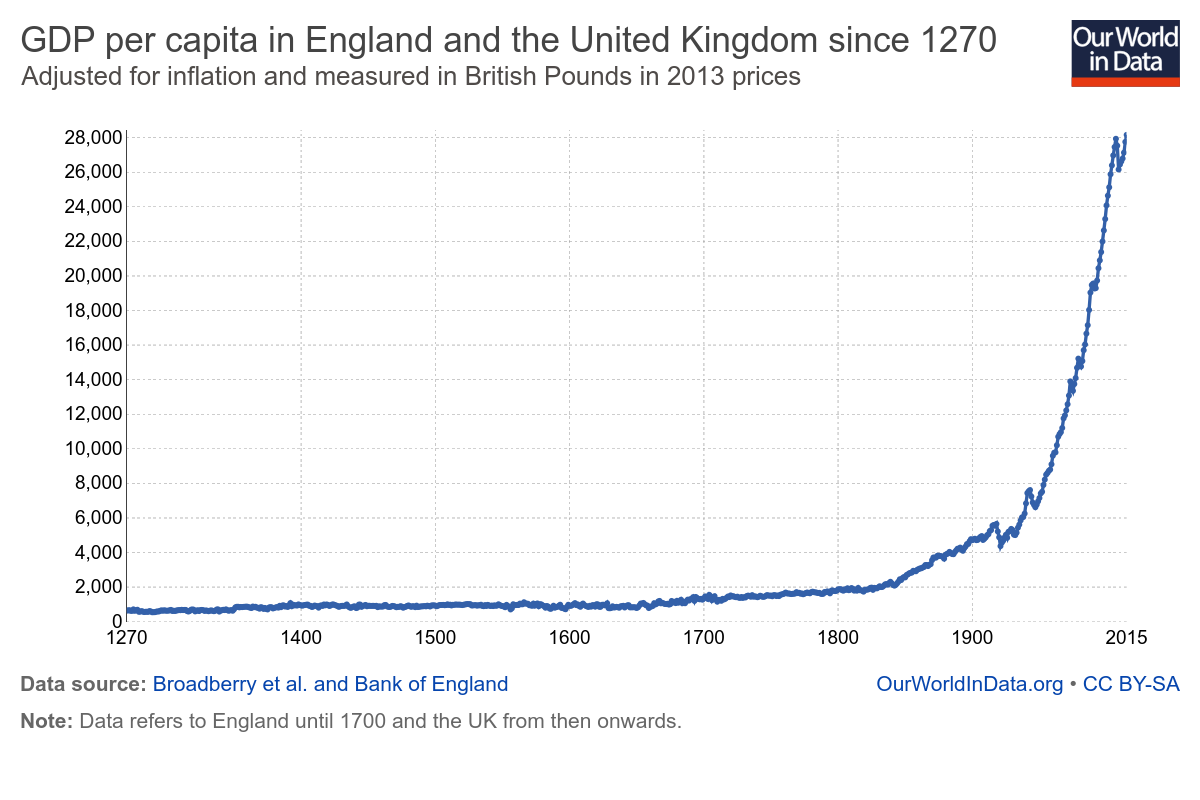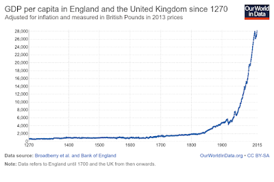 Now think about Capitalist Progress. This graph resembles the human progress one from earlier in the post, with the suggestion that this will continue indefinitely. It would if it were the expression of a mathematical function. It isn't.