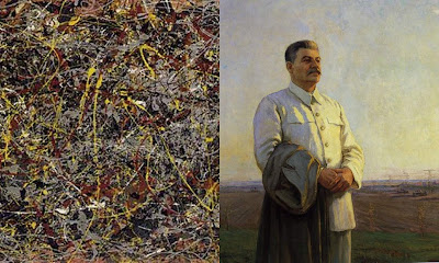 Details of Jackson Pollock's No. 5, 1948 and Fyodor Savvich Shurpin's Morning of Our Motherland, 1946-48