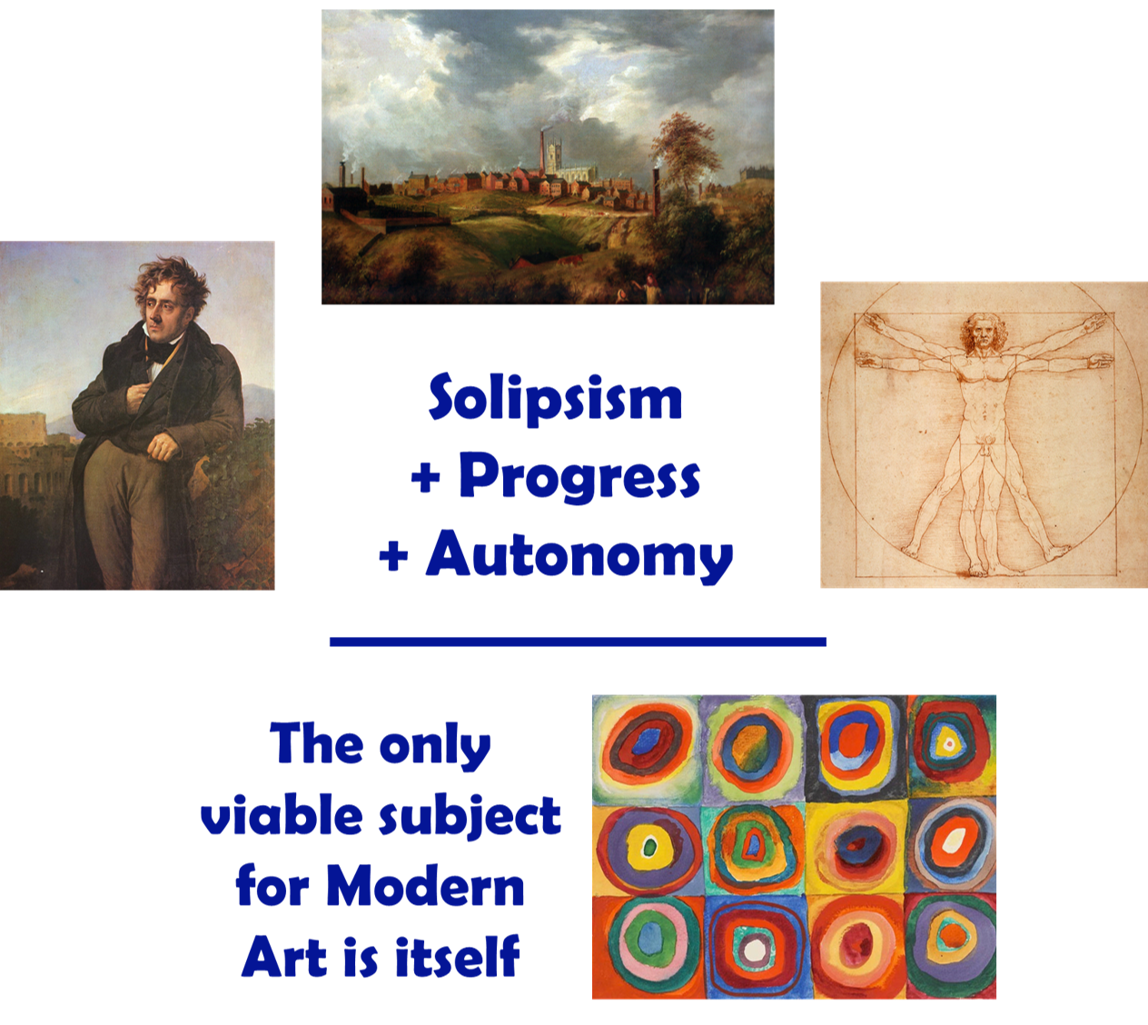 This is the Progress of Industrial Revolution Modernism: contemporary life as the only acceptable subject.