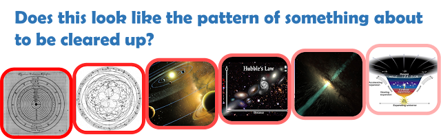 In cosmology, the priests and wizards can change their allegories just as abruptly as the climate illusionists. But they are also working at the outer limits of discernment, with frees them from the burden of having to accommodate readily-available data. Out here, if new information invalidates the latest model, the priests can conjure phantasms to account for the discrepancy. "Dark" matter and energy are rhetorically-named postulates that were wished into discourse to explain why the data wasn't conforming to the models.