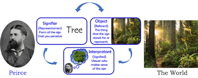 The early semiotic posts looked at Peirce's three part notion of signs. The value isn't whether he's correct in all detail, but in showing that what is being communicated isn't an object in itself, but a speaker's perception and/or thoughts about it.