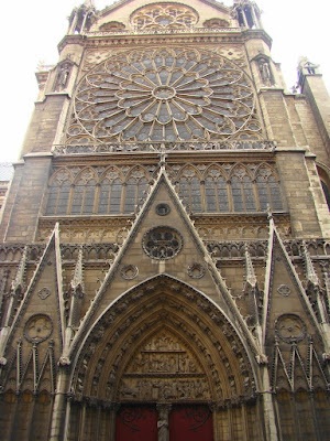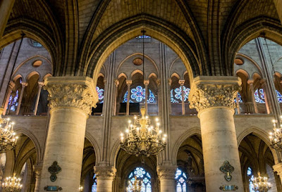 Notre-Dame is not that big for a Gothic cathedral, but visitors are consistently struck by the effect of the interior. The extreme order and proportion - the logos - triggers an emotional response - pathos - because this order resonates as True, and therefore Beautiful. This is where the pointed vaults come back in. The vertical rise gives the pathos a sense of direction. It carries your attention upward, to thoughts of the divine source of this beautiful order.