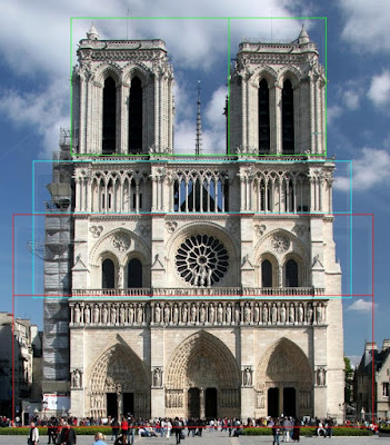Back in reality, we can see pictures from the period that show the systematic logic that went into planning the proportions of a cathedral. These are not the same proportions as a Greek temple, but they apply the same notion of Classical logos through the mathematical principles of Pythagoras, Euclid, and others.