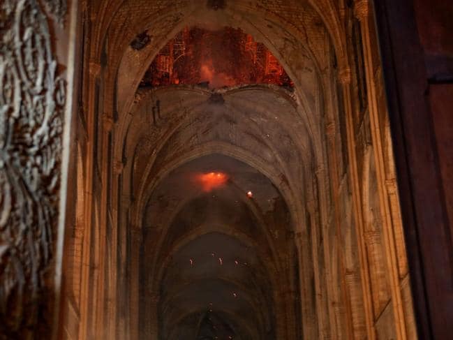 The burning beams are visible, but the sturdy rib vaults passed their test.