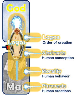 Christian faith and empirical reality align so well because logos is a vertical concept. This lets it manifest in the appropriate way at the appropriate ontological level and connect the material world, abstract reasoning, and ultimate reality, while preserving the essential differences between. Logic applies higher principles to material circumstances through moral reasoning. And the vanity of secular transcendence is avoided because absolutes are correctly placed outside direct human comprehension.