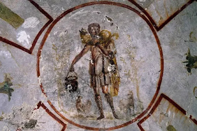 This was Roman people looking to represent a new religious perspective visually, in keeping with the visual orientation of their culture. But they didn't have anything in their artistic or cultural tradition to depict a monotheistic deity in human form. For this reason, early Christian art is very experimental - old motifs tried out in a totally new context.