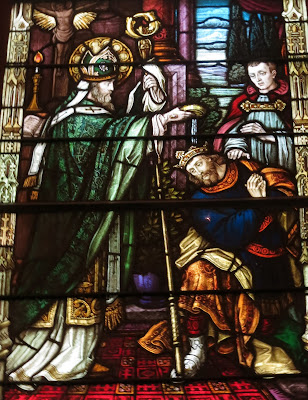 St. Patrick Baptizing the pagan King Leary, 1911, stained glass window, Saint Patrick Catholic Church, Columbus, Ohio