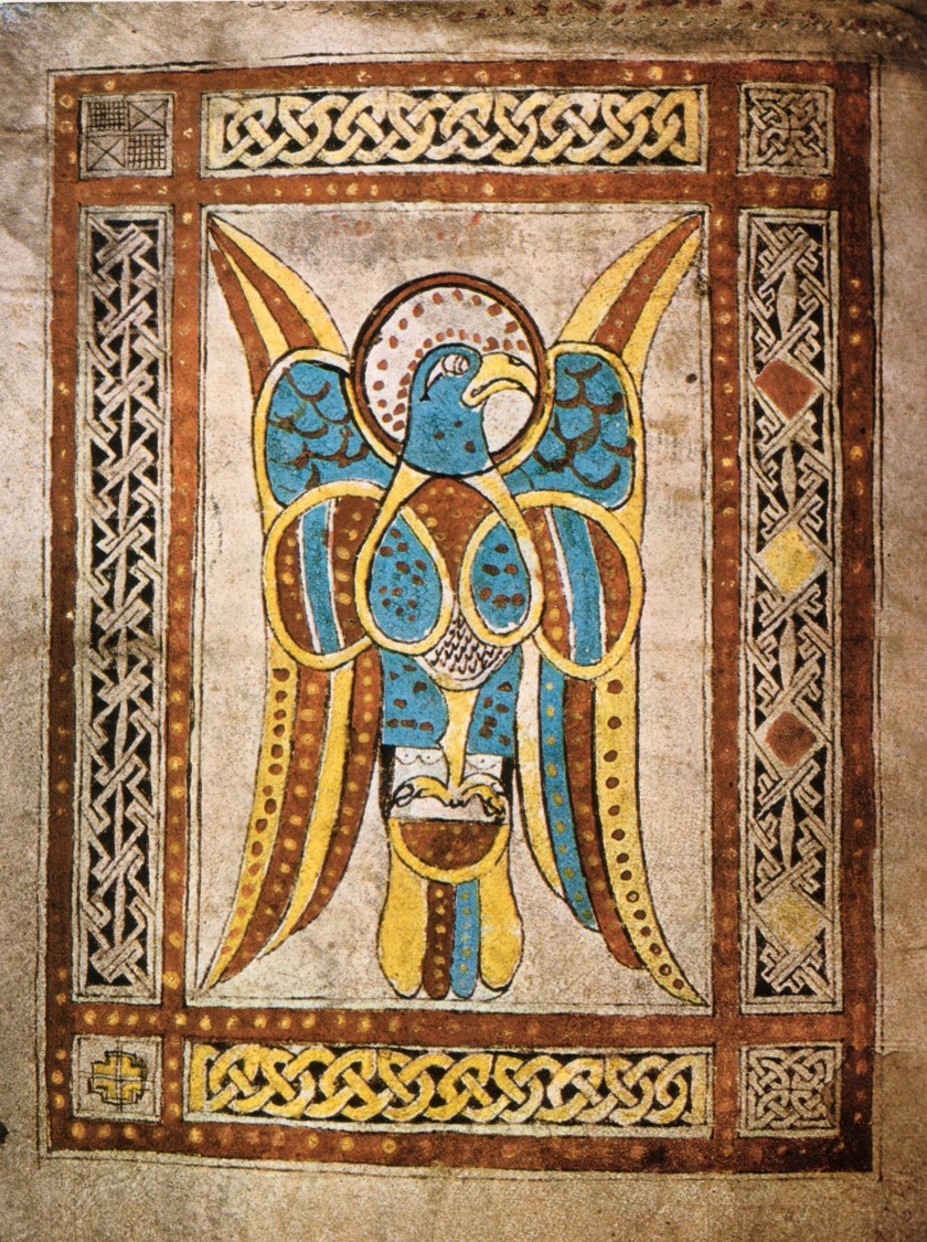 Eagle symbol of John the Evangelist from the Book of Dimma, 8th century, folio 104v, Dublin, Trinity College, MS.A.IV.23