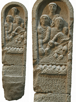 There were Celts who became literate, but they wrote in Latin or Greek, depending on where they were. This monument shows the family in an Eastern Roman style with a Latin inscription. Their viewpoint is already "Romanized" to an extent.
