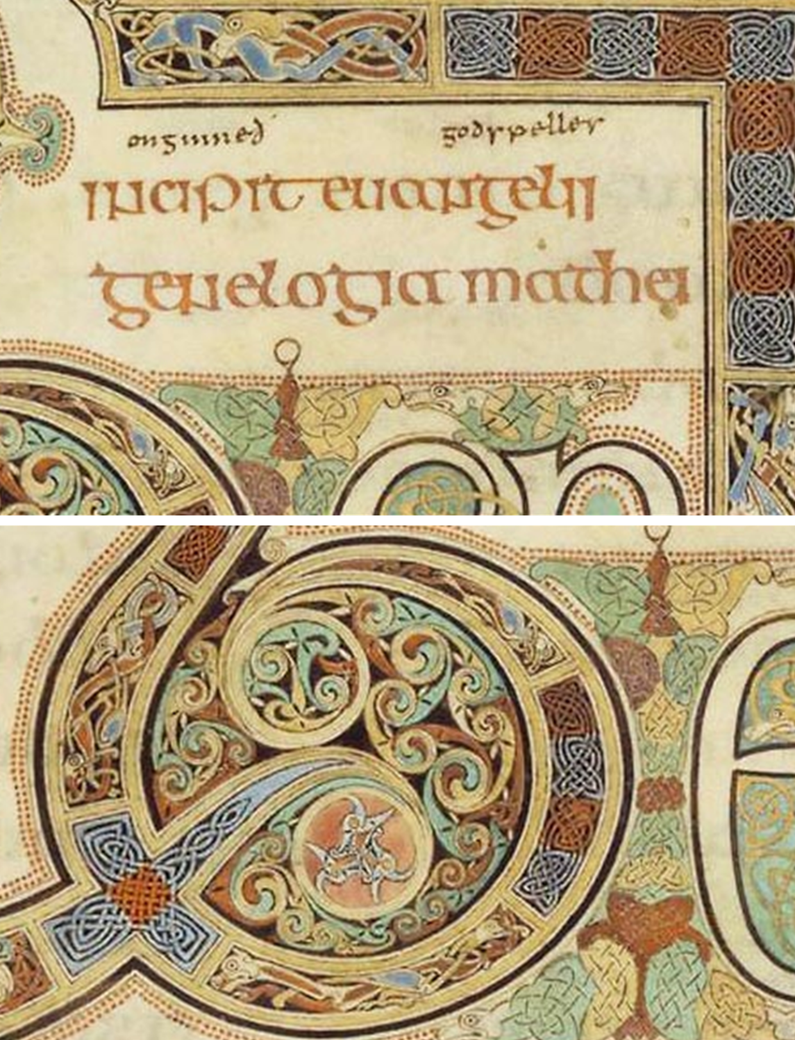 Other abstract designs appear that are older. The spirals and square patterns go back to pre-Christian times. But the interlace is new.