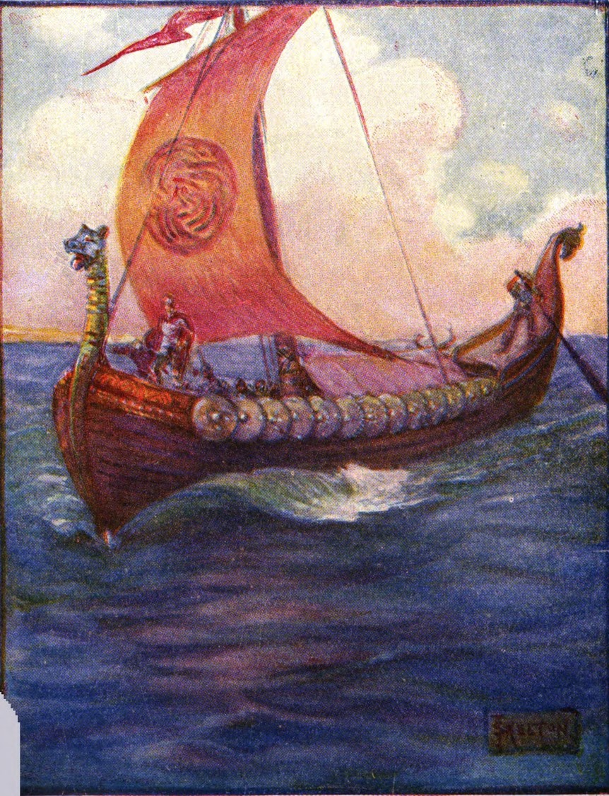 J. R. Skelton, Beowulf sailing to Daneland, from Henrietta Elizabeth Marshall's Stories of Beowulf, London: T.C. & E.C. Jack, 1908