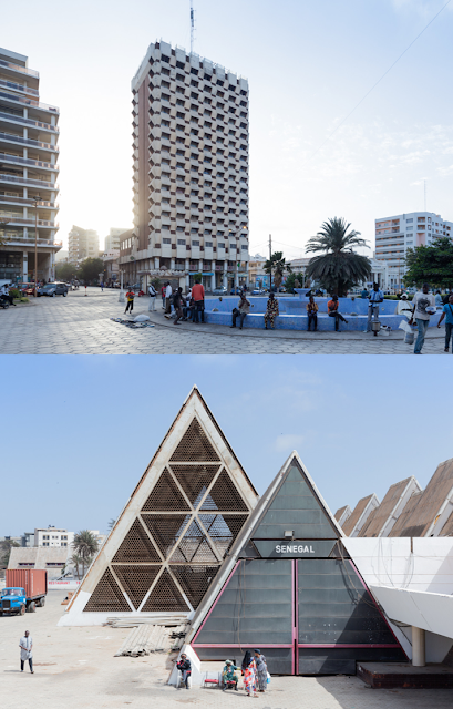 Brutalist Modern "essences" of form and material unironically presented under the heading "Architecture of Independence". How do featureless globalist geometric slabs designed by French architects mark the Senegalese freedom from an alien imperial overlord?