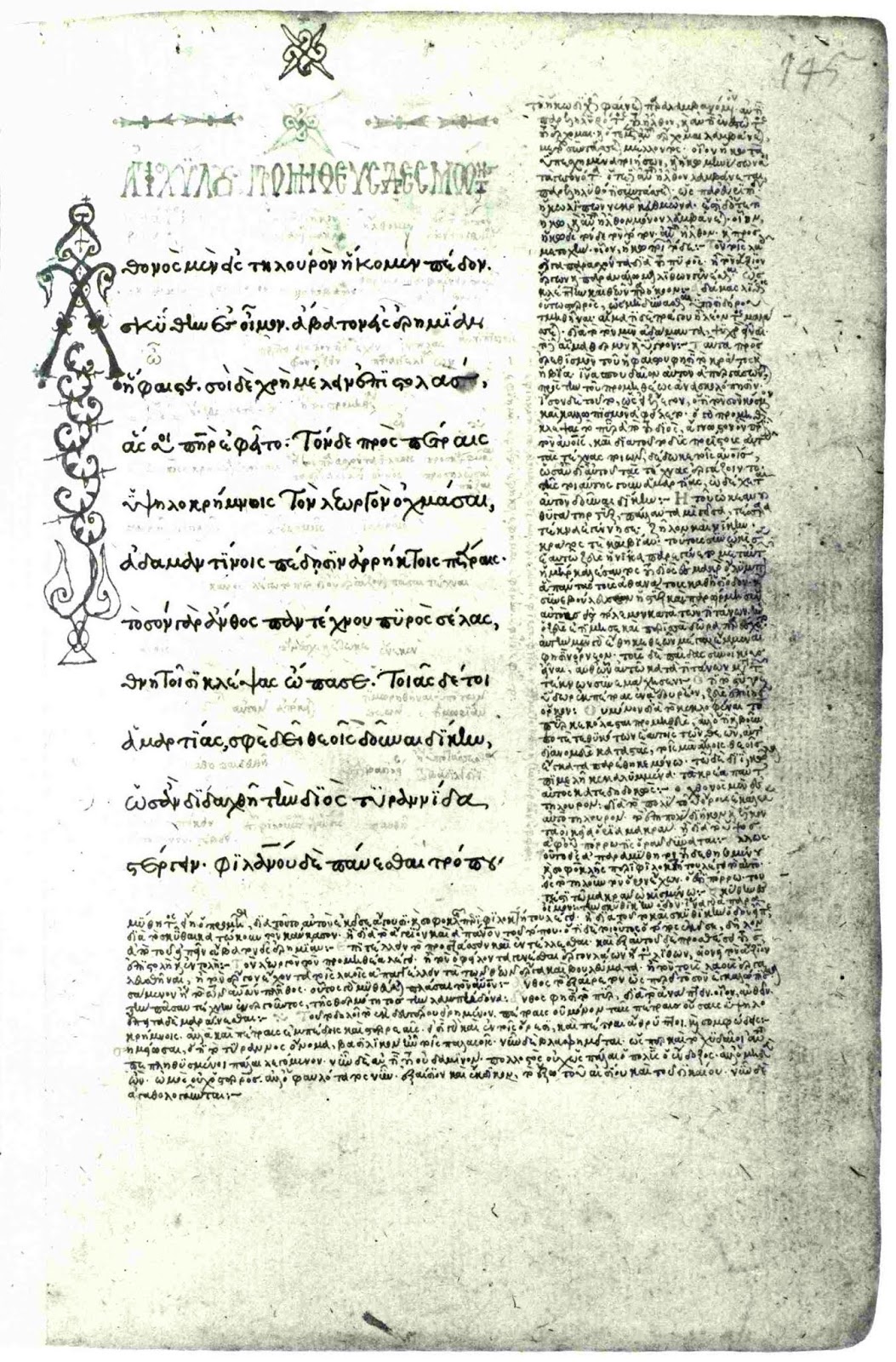 The beginning of Prometheus Bound, first half of the 15th century, Österreichische Nationalbibliothek, Vienna, Cod. Phil. gr. 197, fol. 145r.