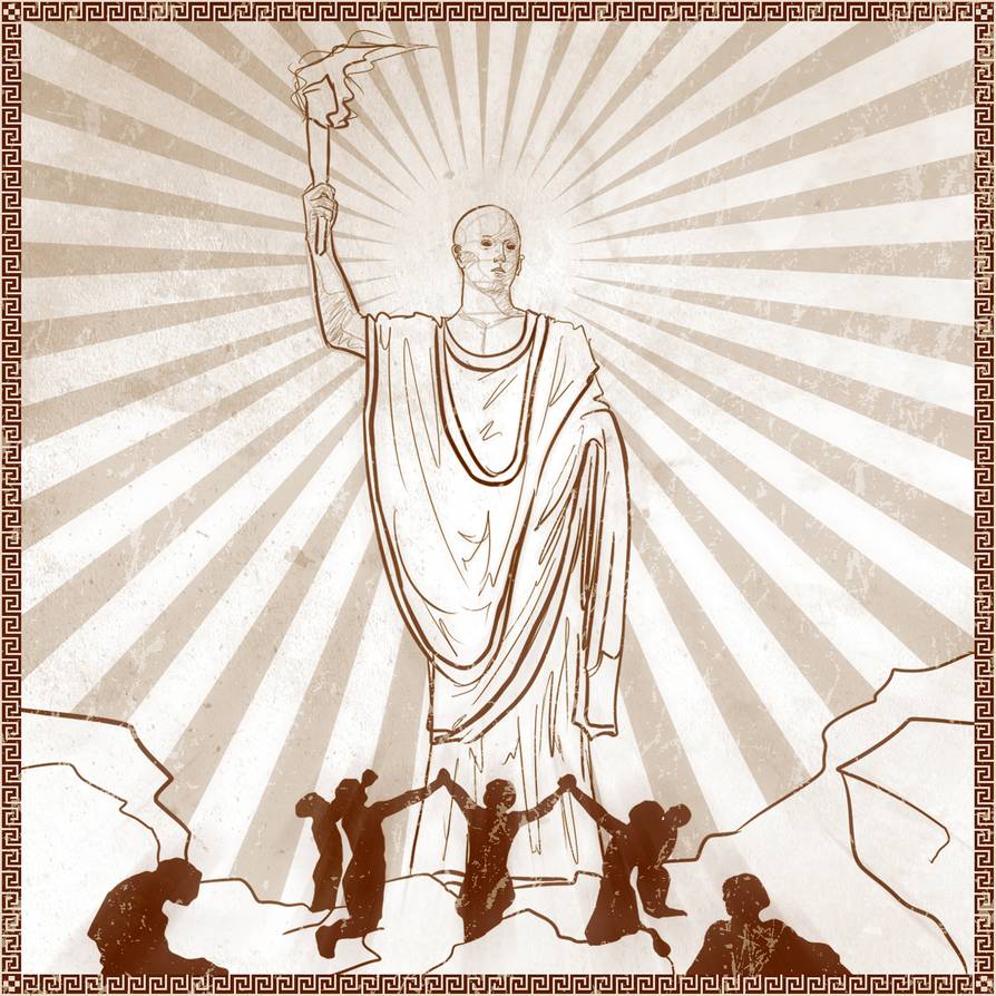 Plato introduces a different take on the gods. For him, they tend to be allegories or symbols rather than literal superhuman beings to be feared or appeased. Zeus as a more benign divine ruler fits this function, making him an archetype of higher wisdom, just as Prometheus stands for technical knowledge. By thinking of them as allegories rather than real characters, they become familiar analogies for more abstract philosophical concepts.