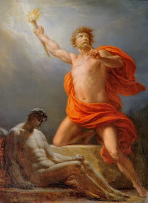 The last couple of occult posts have been looking at Prometheus - the figure from Greek myth who morphed into a complex symbol human vanity and technological arrogance in the modern globalist world. Until now, we've focused on his ancient Greek roots to get a sense of where he came from, and what we found was interesting [click for part 1 and part 2]. Like Greek myth in general, there is no one canonical account of who Prometheus was and what he did. His ancestry doesn't change - he's always the same Titan, but his role certainly does. This gives us a figure with different attributes and identifiers that can be interpreted in different ways.  And this will make him an ideal symbol in the future, because without a fixed identity, he is adaptable.