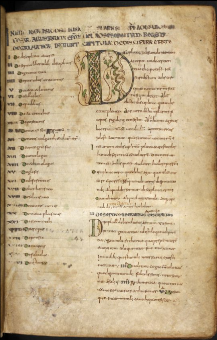 Table of contents from a 9th-century version of Isidore of Seville’s Etymologies from Northern France, British Library Harley MS 2686, f. 5r