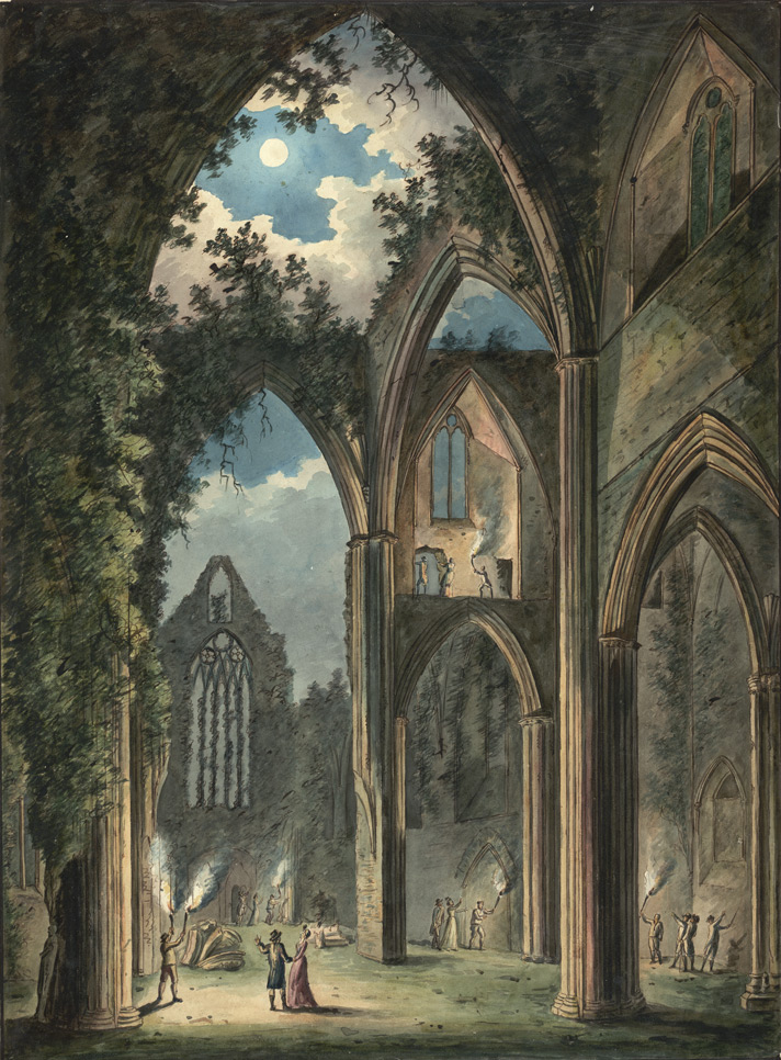 Peter van Lerberghe, A Visit to Tintern Abbey by Moonlight, 1812, watercolor, British Library, London