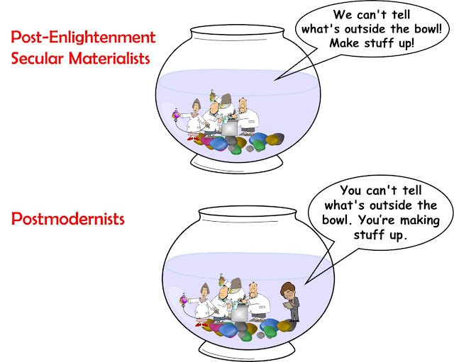 Of course, these are the same smug clowns who were aghast when Postmodernism took their inverted faith to it's logical extreme and laid bare the logical contradictions at its rotten heart. No, idiot materialists, you can't attain Truth with empirical observations in a temporal world from a subjective perspective. It's inherently impossible, a category error of the highest order. And any belief that your subjective impressions rise to that level can be deconstructed effortlessly. Why? Because they're subjective impressions! Let's dumb it down so the secular materialists can understand.