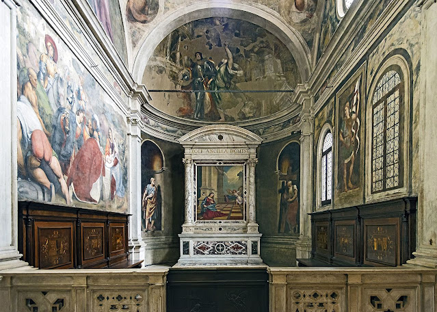 the Annunciation or Malchiostro Chapel in Treviso Cathedral with Titian’s altarpiece and frescos by Pordenone. Worth a look at what
