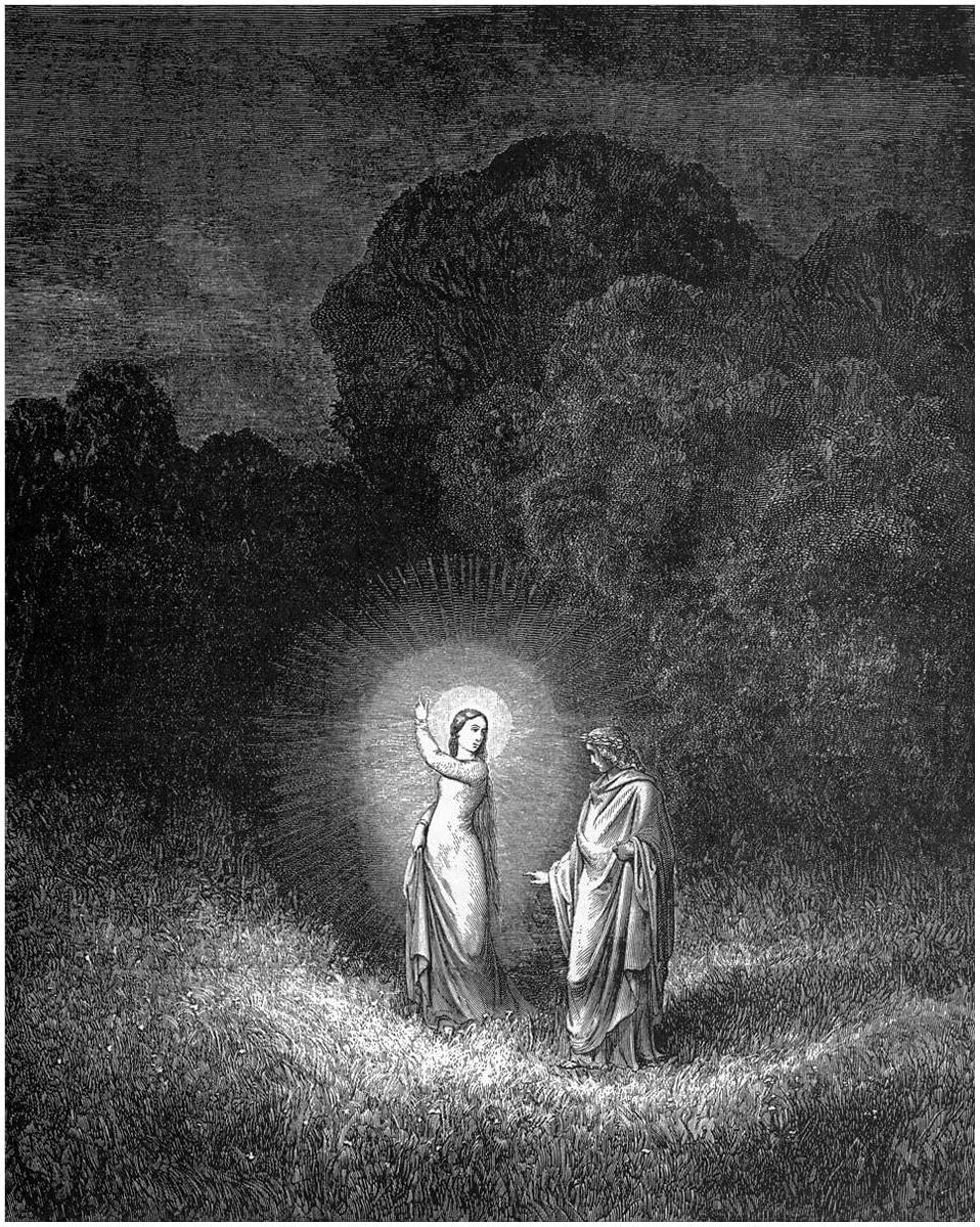 The arrival of Beatrice at the end of the Purgatorio comes with the disappearance of Virgil. The pagan - for all his talent - can't ascend beyond the earth. Dante gives the virtuous pagans Limbo - a place where they don't suffer, but have no access to God's grace.