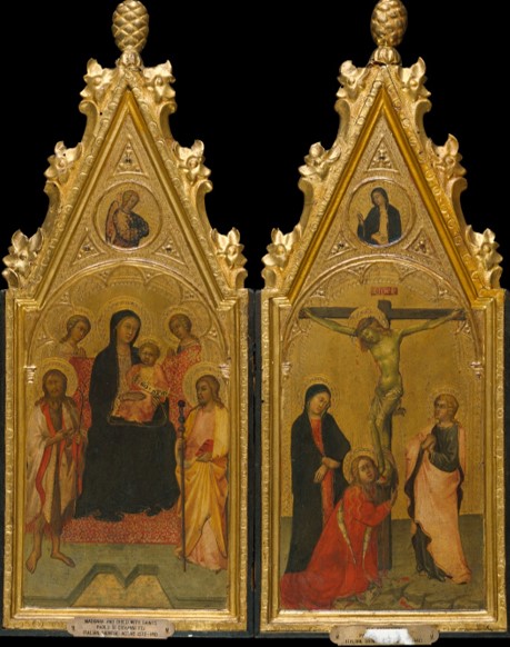 Anonymous Sienese diptych with tabernacle frames, around 1400–1410, tempera on carved, gilt poplar, Metropolitan Museum of Art