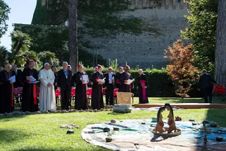 This round of papal idolatry isn't as shockingly egregious as the PST (pope’s satanic throne) because it was smaller scale and quickly over. But it is as profoundly inverted - with the same weird obfuscation and lack of in-depth analysis or explanation. In both cases, it is true that the Church has a deep and extensive culture of art and image use going back to the first Christian centuries. But this – as you may imagine – has been carefully argued and worked out over a long time. And at no point in the centuries-old history of Christian art has there ever been an argument for alien gods to be honored in churches.