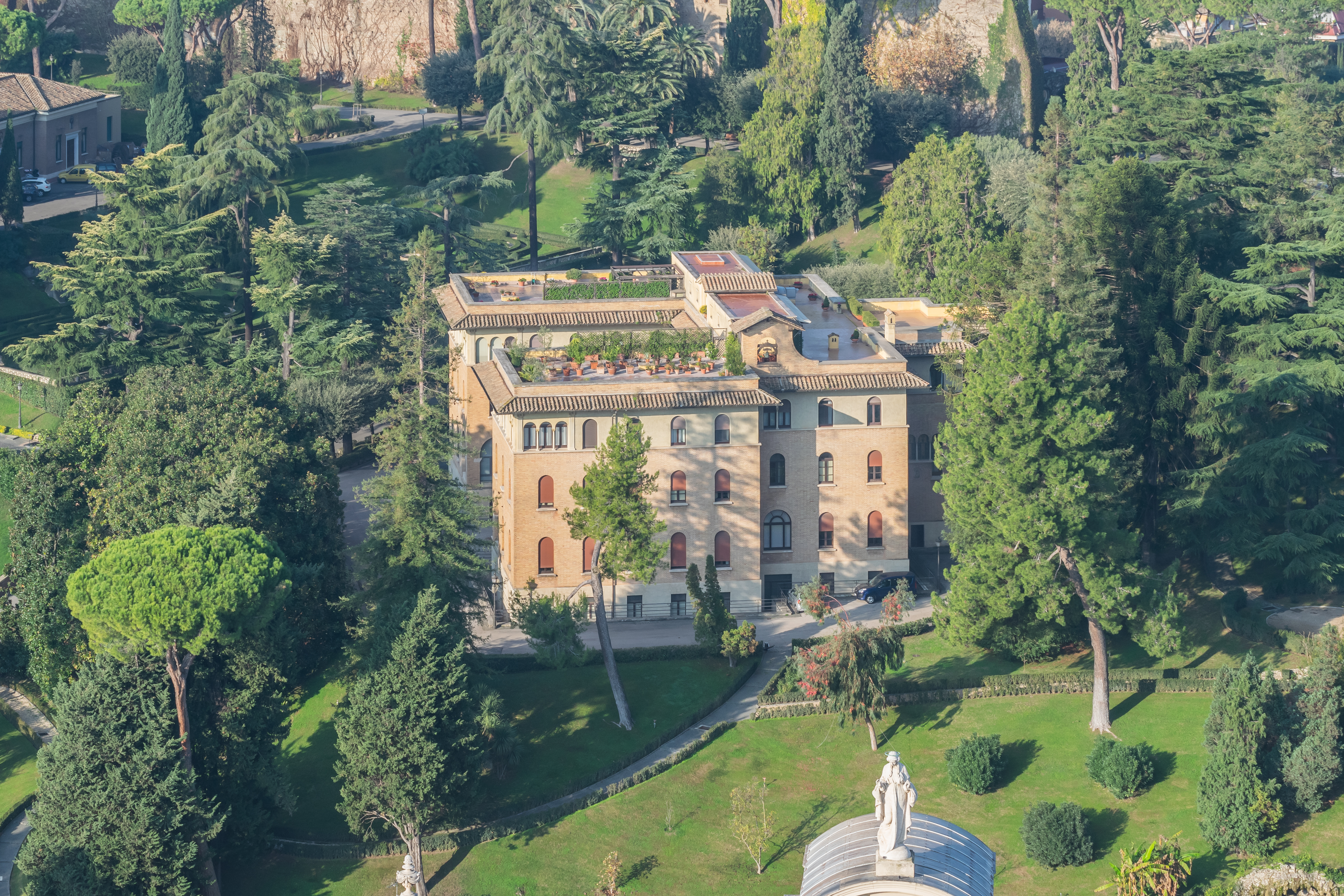 English: Pontifical Ethiopian College in gardens in the Vatican City (view from the dome of Saint Peter's Basilica) |