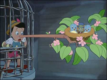 Here's how it went when Pinocchio let Satan be his guide. He finds himself held captive in a bird cage, as SRA slaves being programmed usually do. He finds himself on an island where there is a terrible curse which turns little boys into donkeys. Here's some classic pedophile programmer stuff, an island filled with little boy asses. He finds himself lying, and the nose that grows into a tree branch when he lies shows he is a son of the father of lies (John 8:44), a branch of that family tree that is not of the true tsemach, or Branch of Isaiah 4:2 or Jeremiah 33:15, Zechariah 3:8 and 6:12.