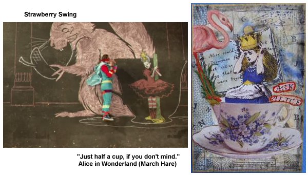When you hear in the lyrics of Strawberry Swing, “such a perfect day,” it must be seen on one level as a reference to “the golden afternoon” when the Wonderland fantasy literature was inspired. Charles Dodgson was rowing on the river Isis in 1862 in the company of Alice Liddell, the introductory poem's Secunda, with her two sisters and the Reverend Robinson Duckworth. The Strawberry Swing's masked superhero was using a red paddle as he ascended to the princess in an Isis adventure.