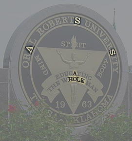 Just like that one, this version at the ORU entrance has the glowing eye on the capstone. See his head as the pupil of the eye, with his upraised arms forming the lower frame. The upper frame is implied, and the illumination of the eye is represented by the SPIRIT flame. That's the Eye of Horus that is also known as the third eye. Since the eye is on the triangle, it's the third eye, of course.