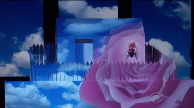 At one point, Katy appears as inside a large rose, and this image implies several things, for one, the element, Earth. For another, the celestial Rose goddess, Venus-Mary, while still in the clouds.
