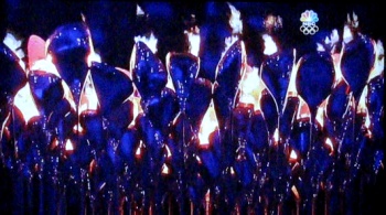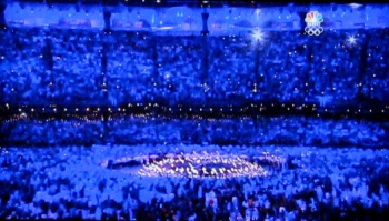 A countdown is underway, counting off the seconds. This isn't unusual, of course, and neither is it unusual for ceremonies to feature a review of the history of the games and that of the host city and country, but I encourage you to look beyond that to see the emphasis placed upon time. In every commentary on such a topic it's going to be rife with words relating to time and space, but you'll notice how the descriptive language and specific subjects give emphasis to the space-time theme.