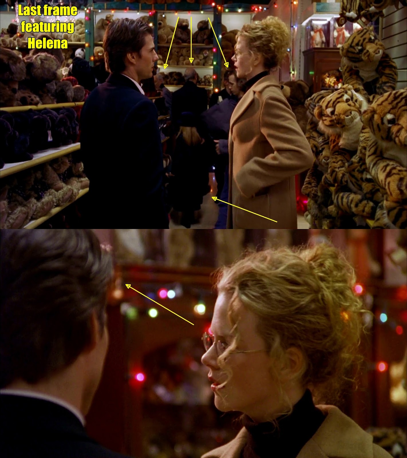 Even her body position in both scenes (relative to Bill's) is the same. The 'rainbow ends' dialogue is another sledgehammer clue.